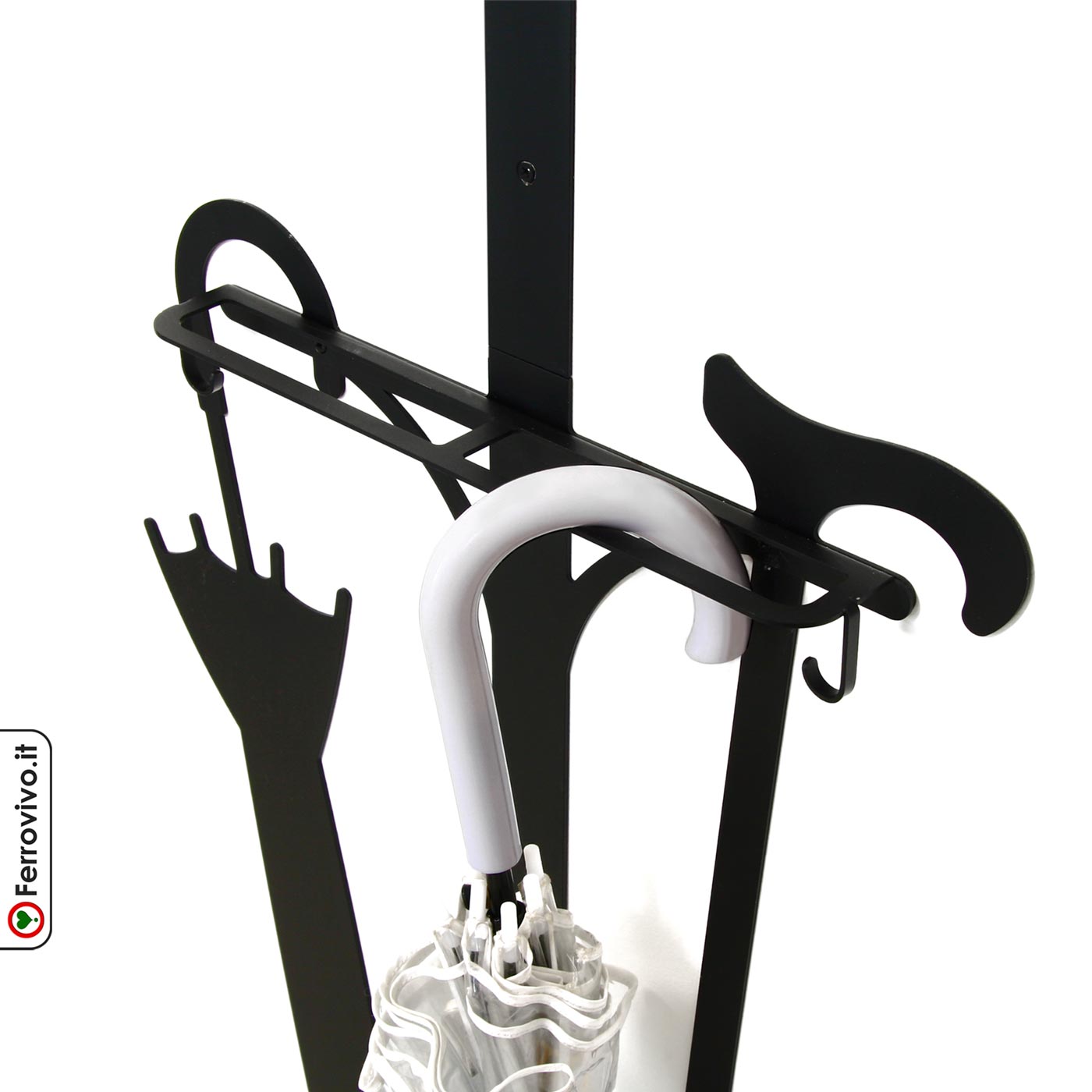 Caractéristiques: 3 pommeaux principaux (diamètre 5 cm), 4 petits crochets et un porte-parapluie.