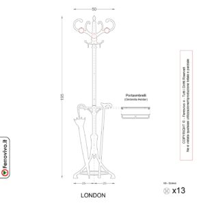 Pièces: Nous fabriquons le porte-manteaux London en 3 pièces plus le porte-parapluie.