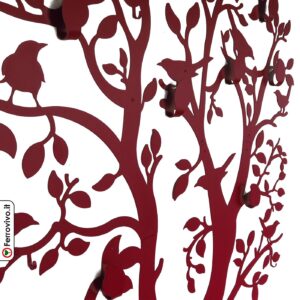 Actuellement, les décorations murales à fort impact visuel sont très en vogue. Avec le porte-manteau mural Roma, vous pourrez sûrement donner du caractère à l’ambiance avec l’avantage supplémentaire d’une solution peu encombrante avec 8 crochets pour accrocher. Une fusion équilibrée d’esthétique et de fonctionnalité avec le charme intemporel du métal et la solennité d’un grand arbre feuillu. Donnez-lui un mur suffisamment large pour rehausser encore plus son apparence. Parfait dans toutes les couleurs qui rappellent la nature, il sera certainement très spécial même dans les couleurs les plus insolites et les plus brillantes, choisissez parmi nos 15 couleurs celle qui s’intègre le mieux à votre mobilier. Dans la même série, retrouvez également la tête de lit Roma, une solution originale et peu encombrante pour rendre la chambre unique.