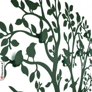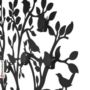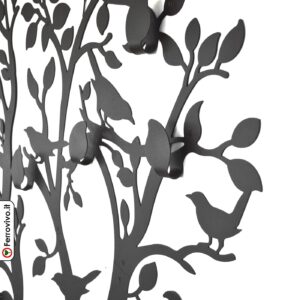 Porte manteau Roma, suggestif et majestueux comme la Ville Eternelle. Dans ce produit, les crochets pour suspendre les vêtements sont en forme de feuille, de cette façon ils sont mieux intégrés dans le design et disparaissent presque de la vue.